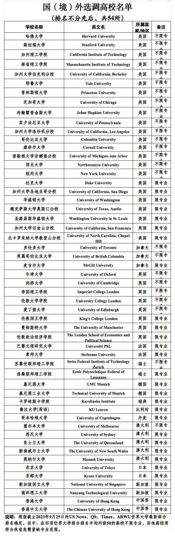 近日,四川发布面向国(境)外部分知名高校选调2024届优秀大学毕业生公告,其中共有54所境外院校入围。