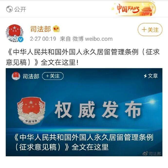 2020年中国司法部发布了《外国人永久居留管理条例》,公开征求意见。此条例征求意见稿公布后,随即引发民间近乎一边倒的反对,最终该意见被撤回。
