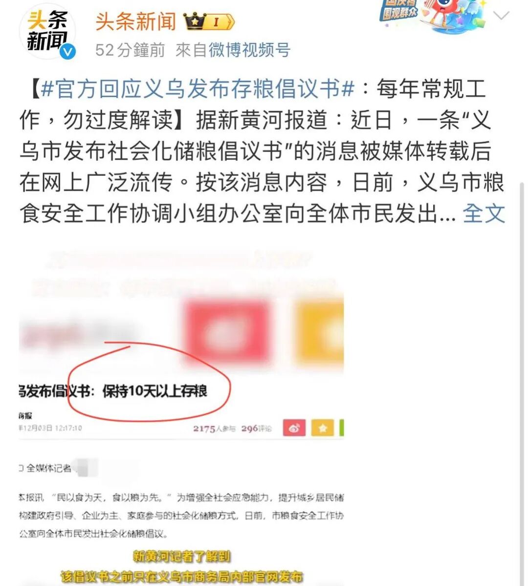 显然是大家都猜错了。有媒体就这件事采访了义乌市的商务局粮食储备科负责人,这位负责人说:“这只是每年的常规工作。”主要是为了提高大家节约粮食、存粮的意识。这只是一个倡议书,而且是每年的常规工作,周围其他县市区也在做,并非外界所猜测义乌出现什么特殊情况。
