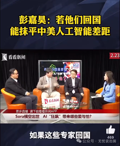 彭主任接着给出了非常有力的证据:“为什么呢?你看美国,最顶尖的人工智能专家,三分之一到四分之一,实际上是中国人,如果这些专家回国,我们将立即抹平与美国之间的技术差距”。