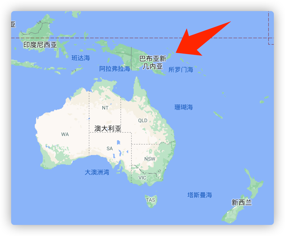 巴布亚新几内亚,位于太平洋中部,1975年脱离澳大利亚独立,由多个群岛组成,国土面积46万平方公里,相当于中国四川省那么大的面积,人口800余万。