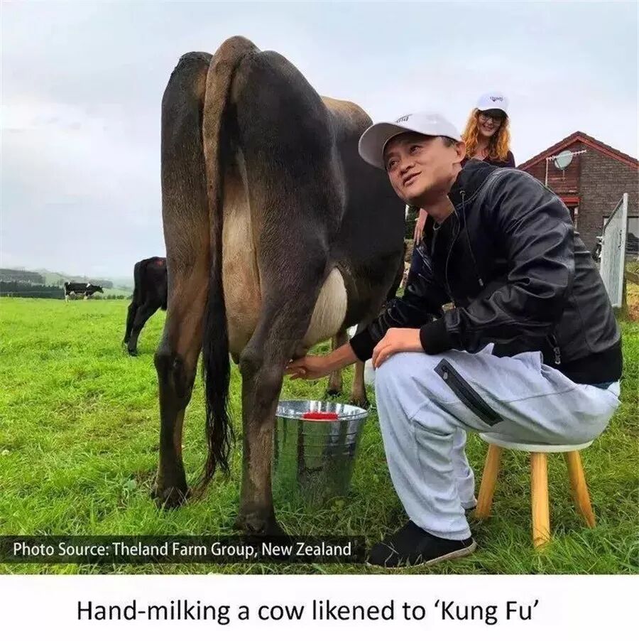 马云更是买下了新西兰的一家乳制品企业,还曾经亲自跑去表演挤奶技术。
