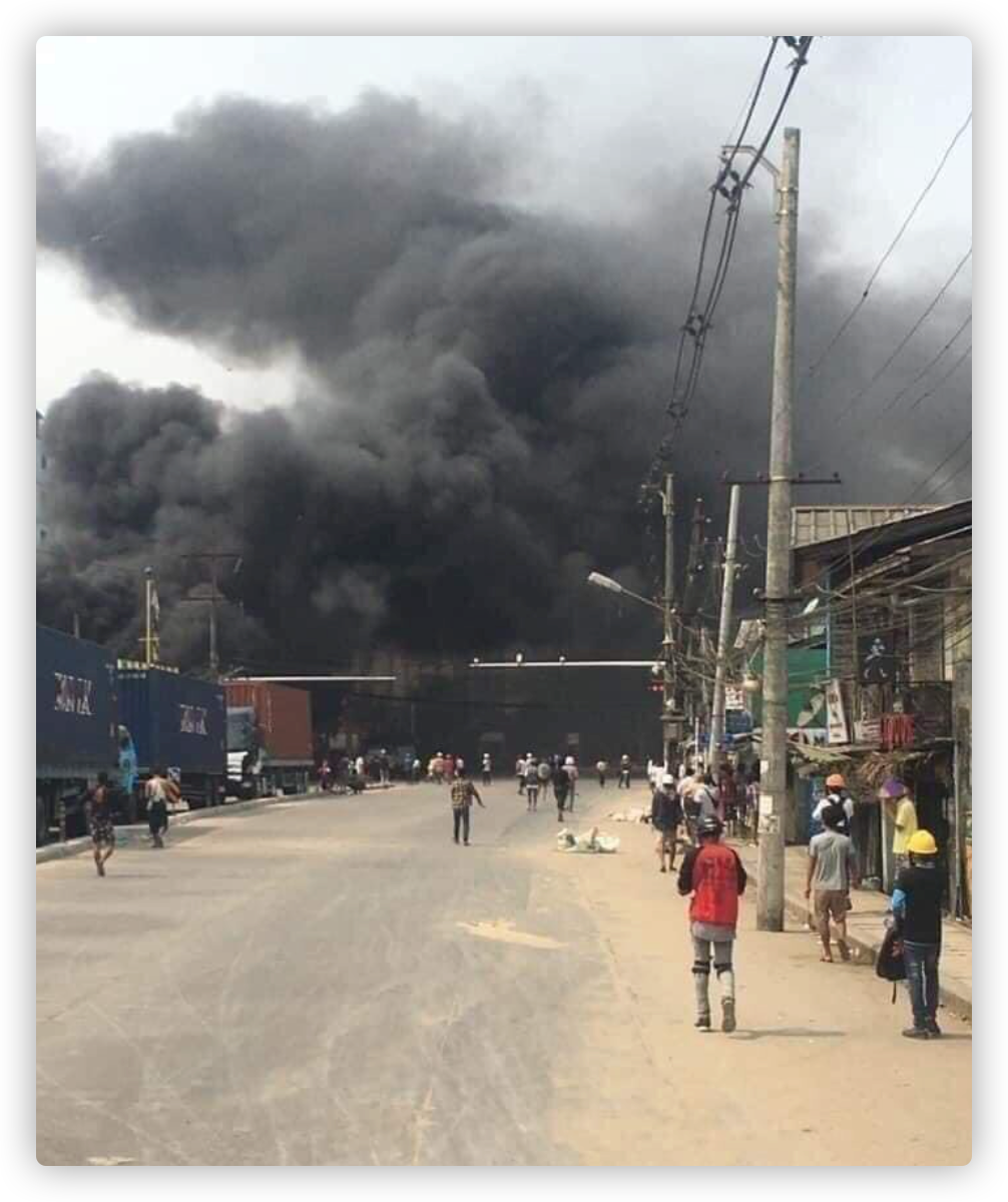 位于缅甸仰光的莱达雅工业区的多家华人工厂,遭到了有组织的打砸抢烧。一群骑着摩托车的暴徒,带着斧头、棍棒、汽油桶冲进华人工厂,先是对工厂员工进行恐吓和殴打,接着一通打砸,抢夺财物最后在厂区纵火后扬长而去。
