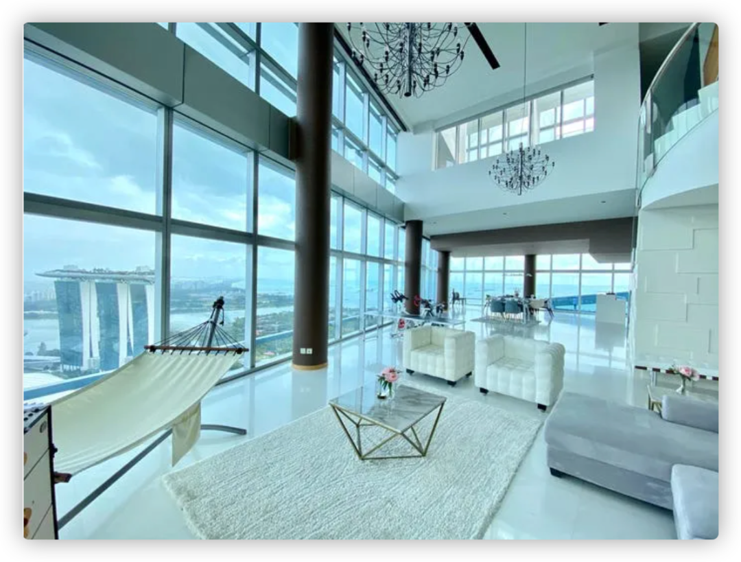 疫情期间,新加坡别墅、空中豪宅、高级写字楼的销售量暴增。这套有24个房间,售价1.04亿美元的空中豪宅,就是在疫情期间售卖出去的。