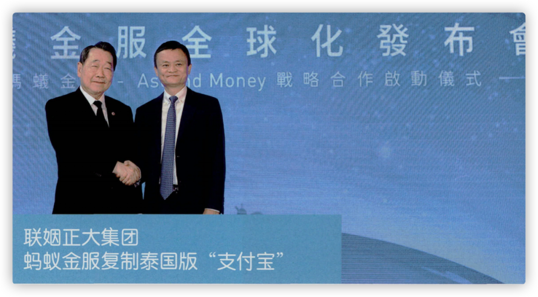 同年11月,马云现身香港四季酒店,为蚂蚁金服与泰国支付企业Ascend Money的合作——“打造泰国支付宝”项目签约站台。