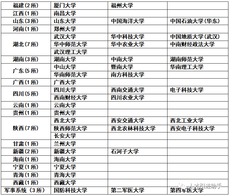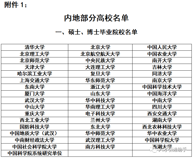 1、内地部分高校名单