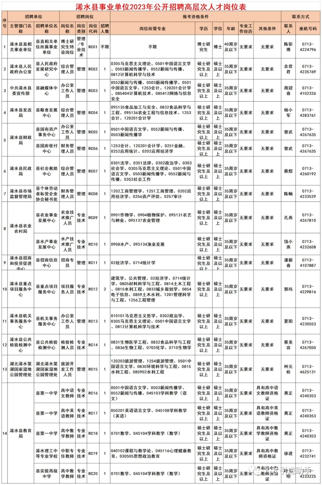 1:浠水县事业单位2023年公开招聘高层次人才岗位表