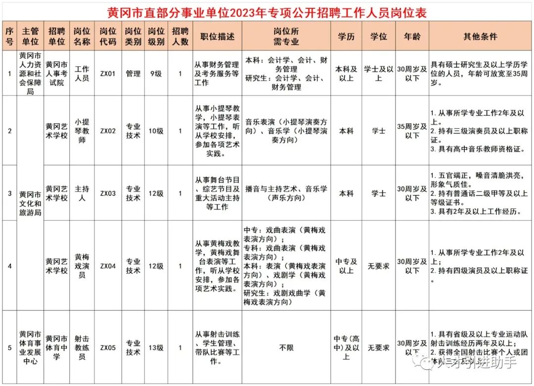 (二)黄冈艺校和市体育中学ZX02至ZX05岗位