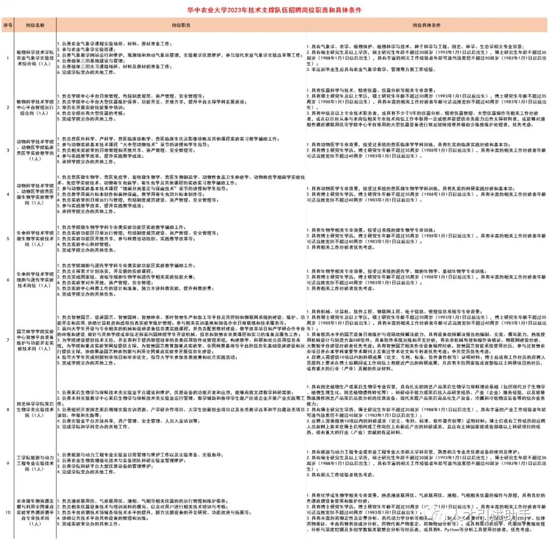 华中农业大学是教育部直属全国重点大学,是首批国家“双一流”建设高校。为深入推进新时代人才强校战略,建设精于现代实验技术、科学管理实验室和优质服务教学科研的卓越技术支撑队伍,学校决定公开招聘专业技术人员10名。