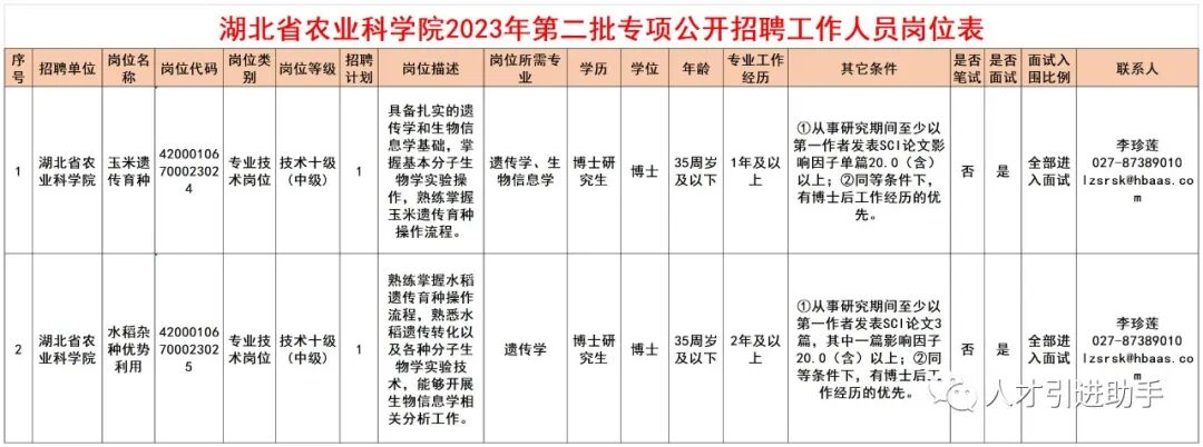 政策咨询电话:027-87389010 (湖北省农科院粮食作物研究所人事科)