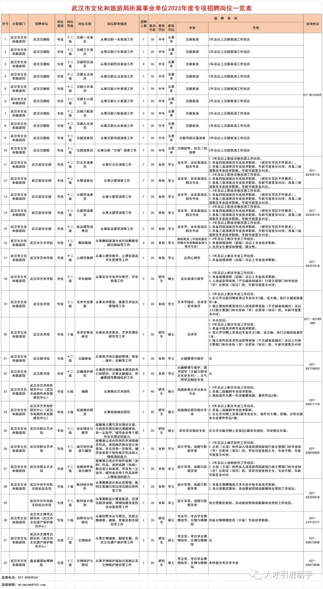 1.武汉市文化和旅游局所属事业单位2023年度专项招聘岗位一览表
