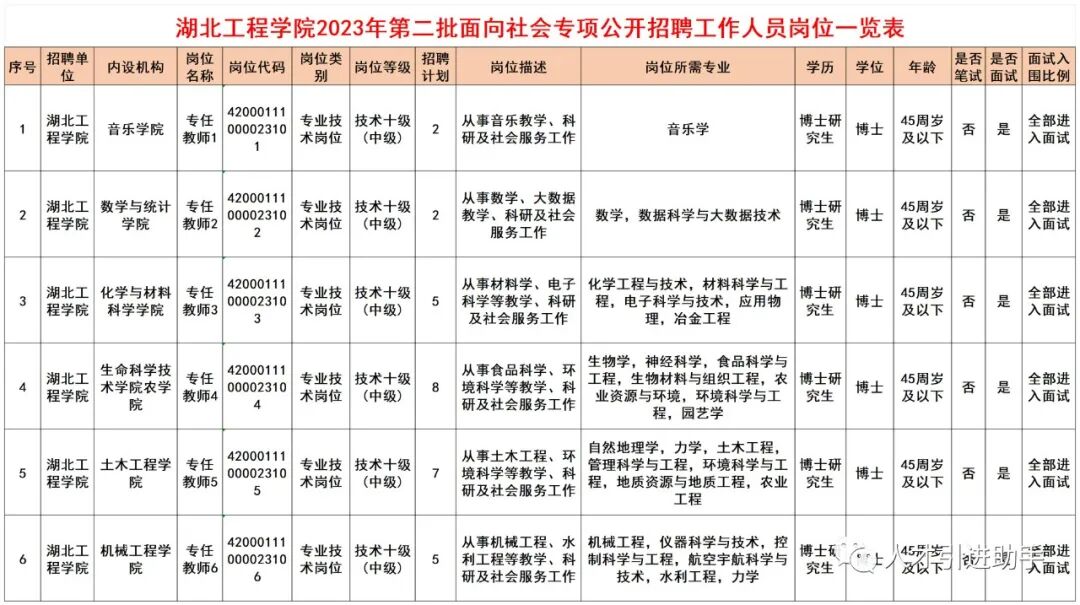 博士研究生的招聘考试免笔试,资格审核通过的应聘者均进入面试考核环节。本次专项公开招聘工作在湖北省人社厅的指导下进行,具体工作由湖北工程学院组织。招聘考核工作由学校人事处统筹,各用人部门成立招聘工作考核小组,负责本部门招聘考核方案的制定和考核工作的组织实施。