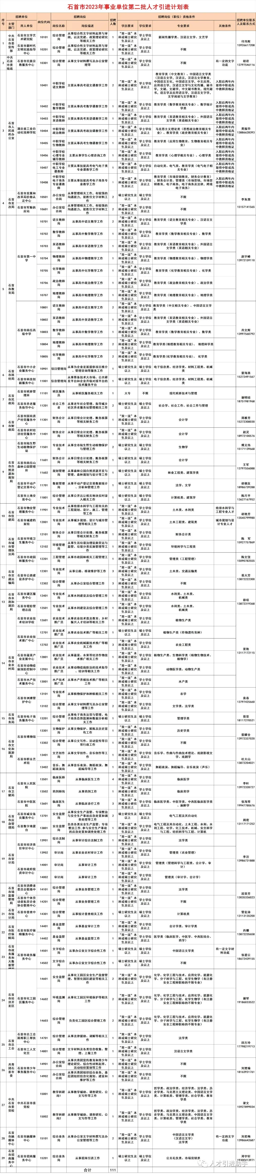 为贯彻落实“我选湖北·建功石首”人才计划意见,深入实施人才强市战略,加快建成区域人才高地,决定启动石首市2023年事业单位第二批人才引进。