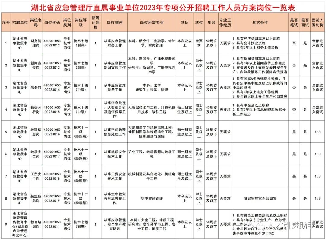 湖北省应急管理厅2023年面向社会专项公开招聘工作人员岗位一览表