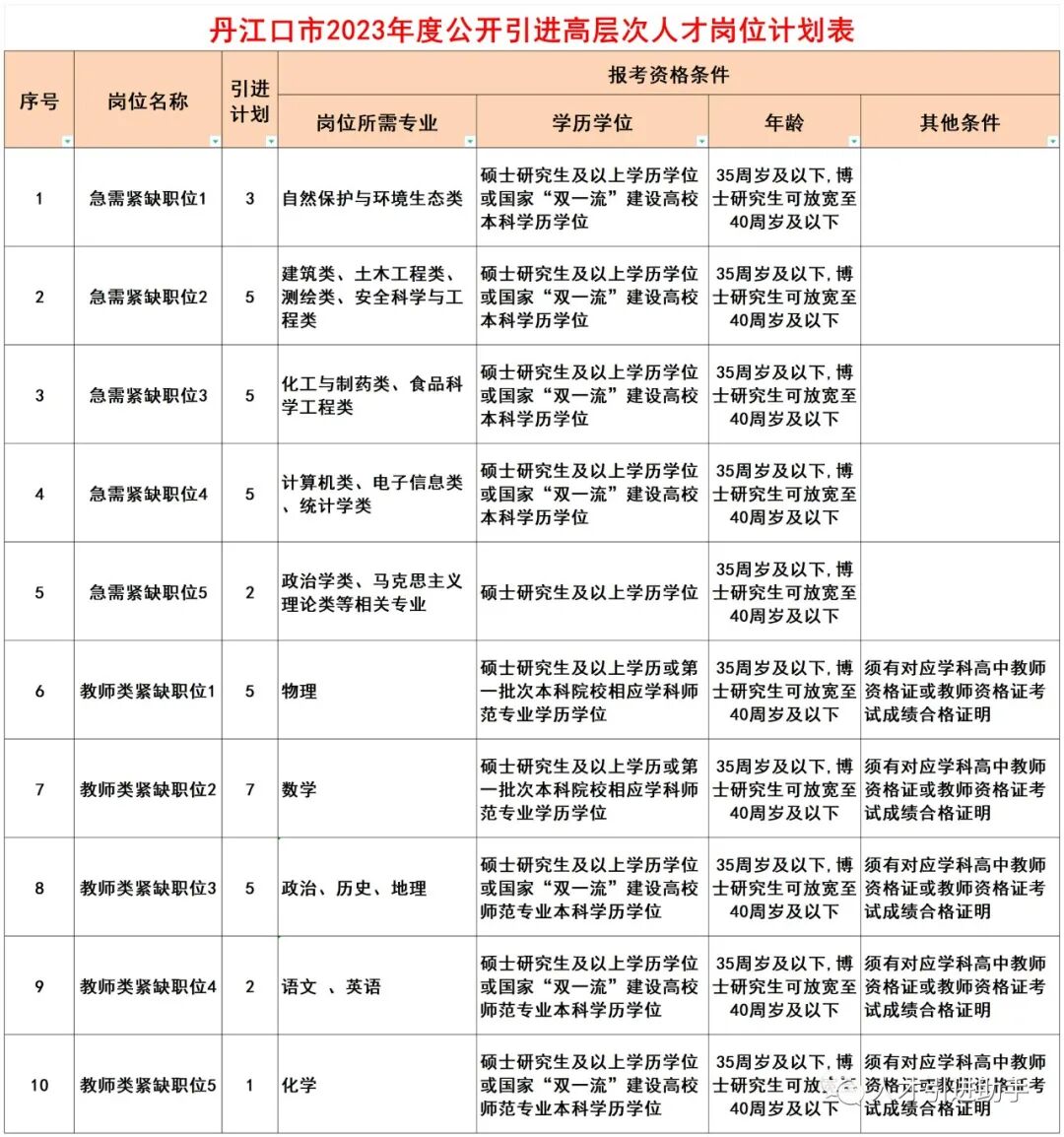1:丹江口市2023年度公开引进高层次人才岗位计划表