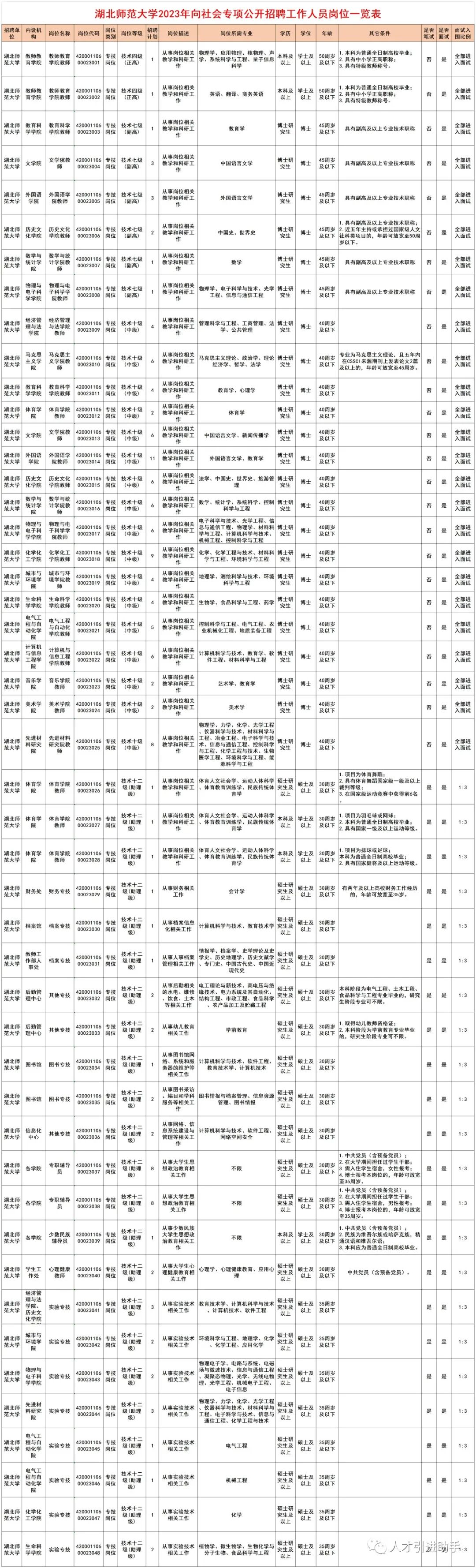 1.湖北师范大学2023年向社会专项公开招聘工作人员岗位一览表