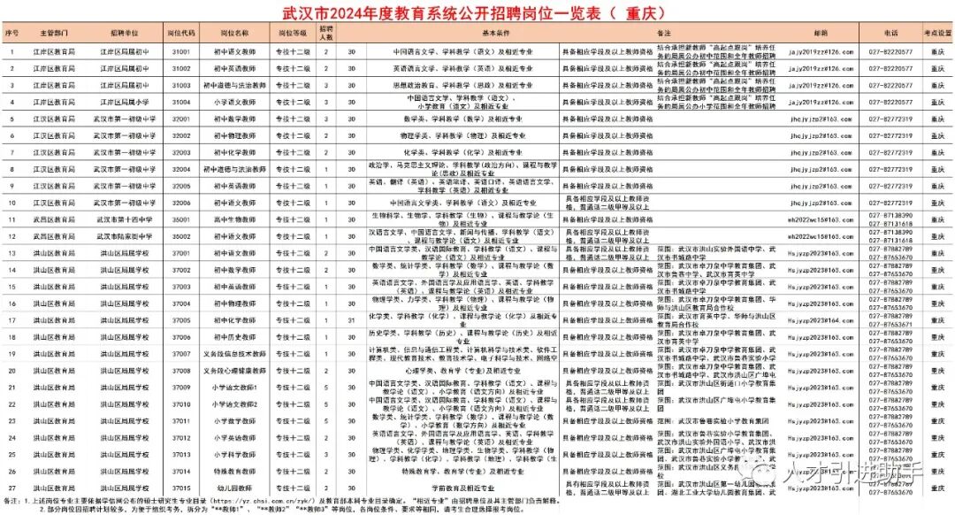 为吸引和鼓励优秀高校毕业生投身武汉教育事业,进一步优化教师学缘结构,现组织部分中小学校面向省外部分地区高校招聘事业单位编制教师。现将有关事项公告如下: