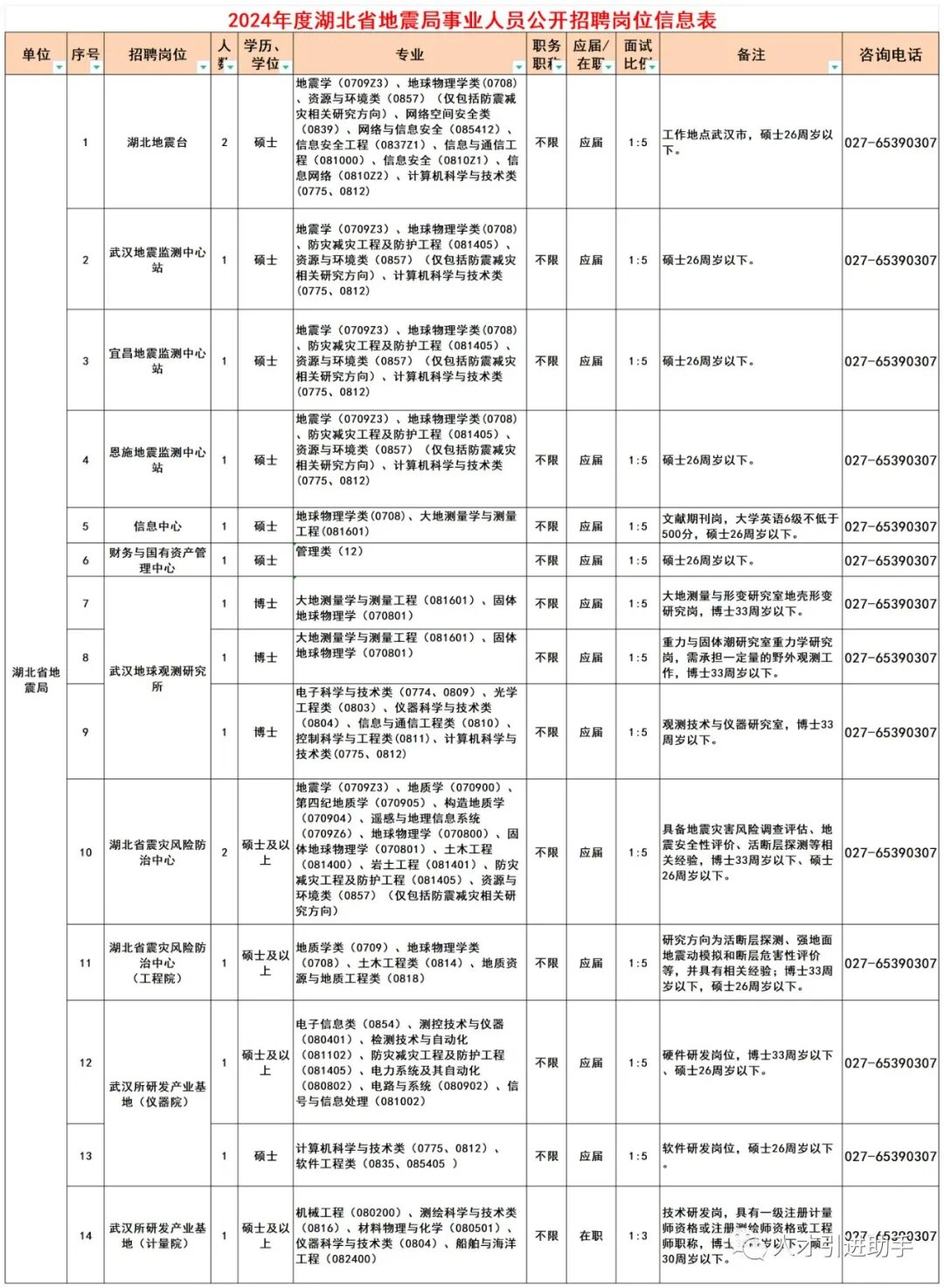 1.2024年度湖北省地震局事业人员公开招聘岗位信息表