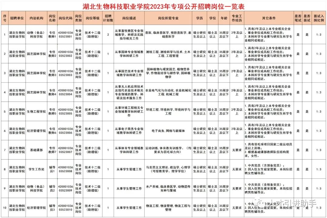 政策咨询电话:027-87697213、87697212(湖北生物科技职业学院人事处)
