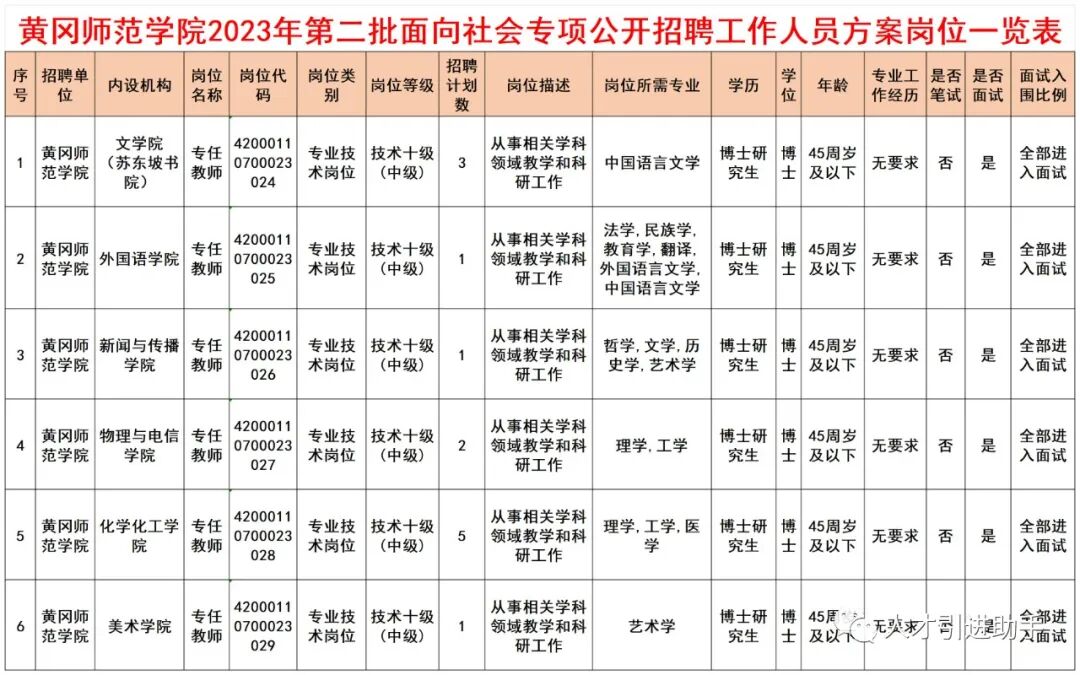 2023年黄冈师范学院第二批专项公开招聘工作人员13名。