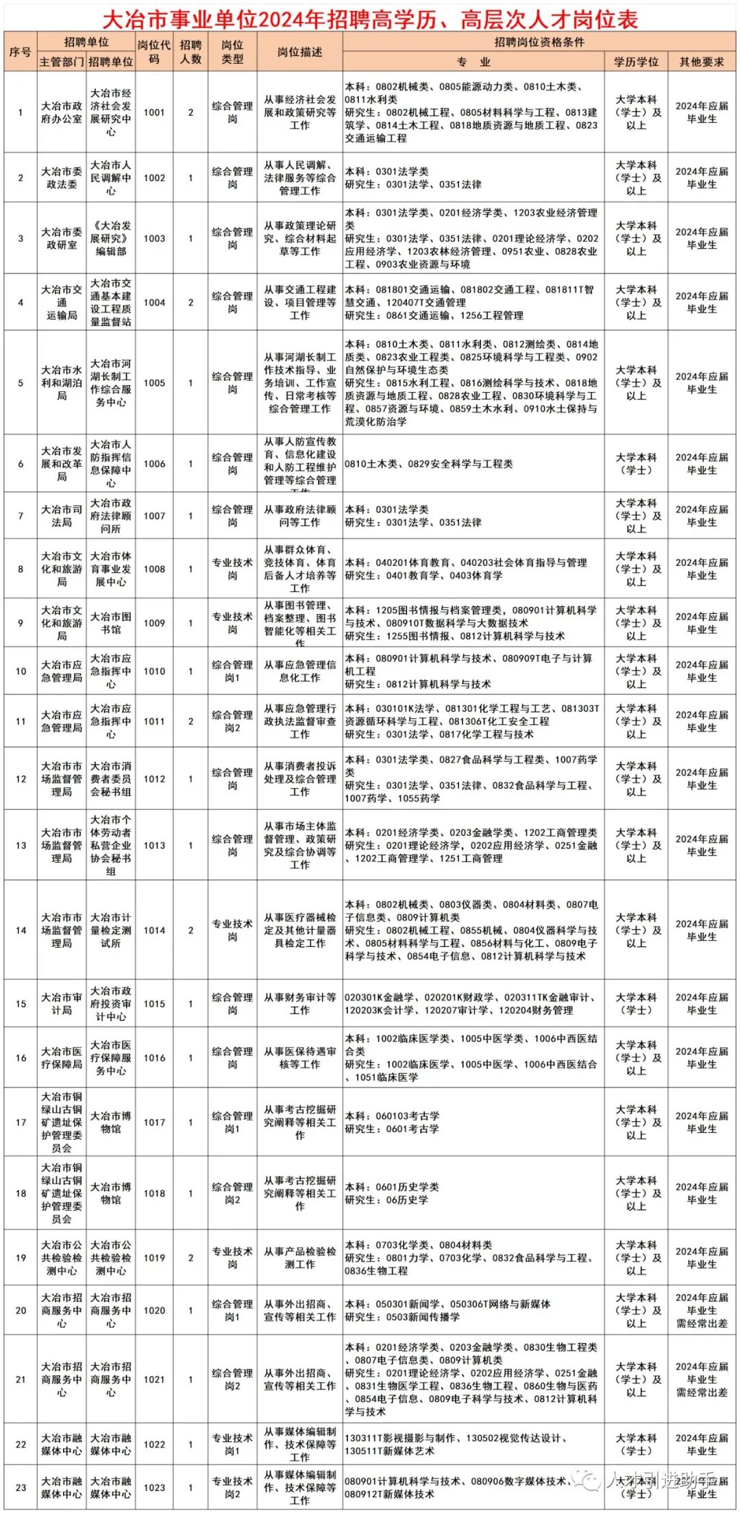 为深入实施人才强市战略,改善人才队伍结构,大冶市2024年计划引进一批专业性强、综合素质好、符合大冶发展需要的高学历、高层次人才。