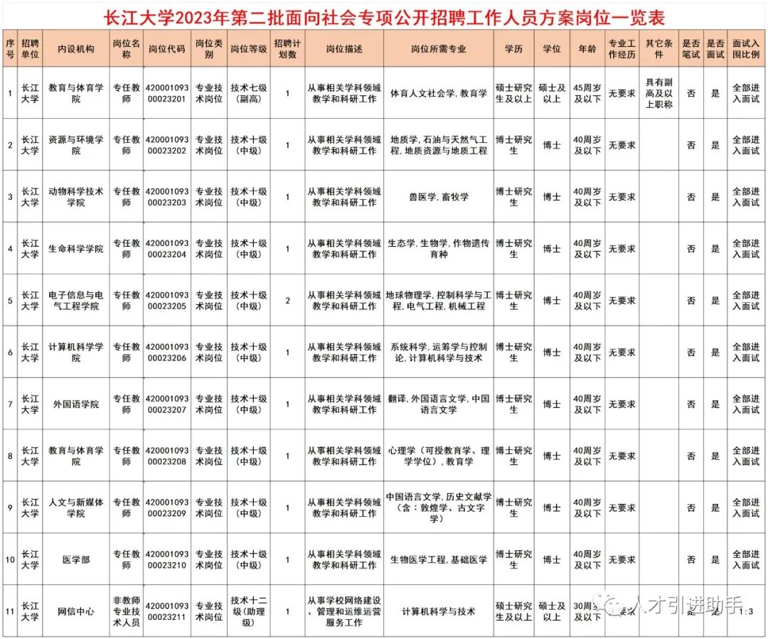 1.长江大学2023年第二批面向社会专项公开招聘工作人员方案岗位表