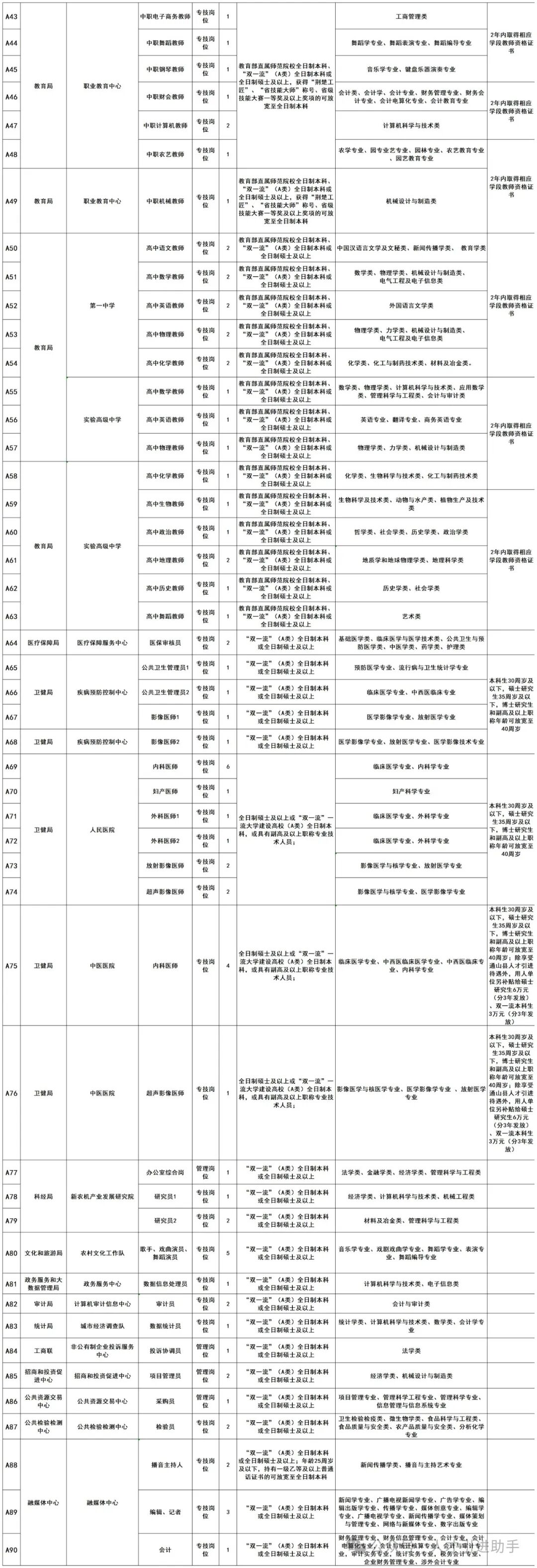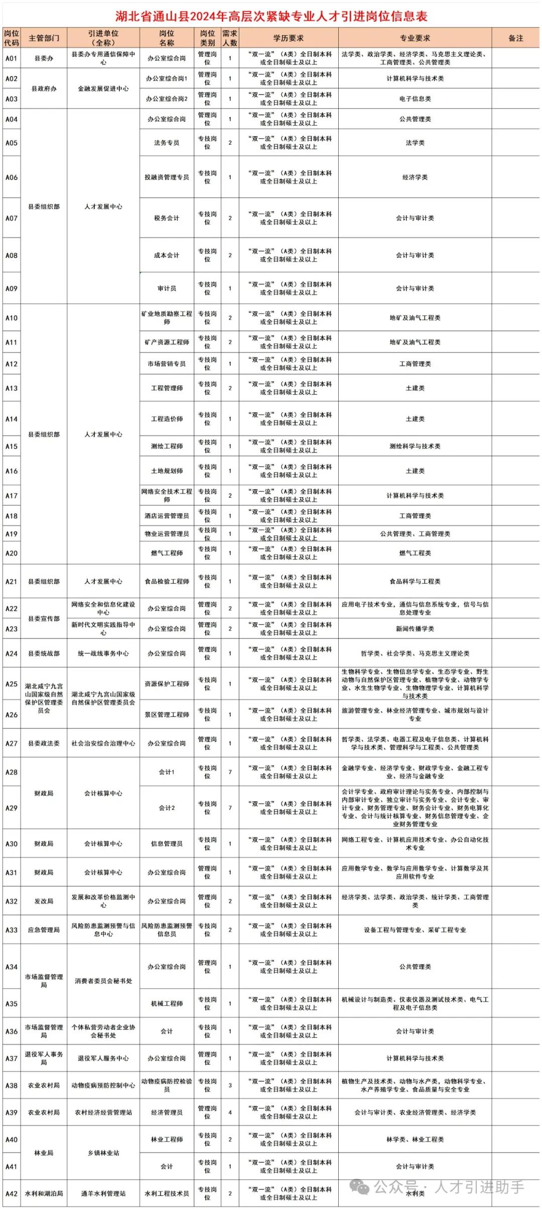 1.湖北省通山县2024年高层次紧缺专业人才引进岗位信息表