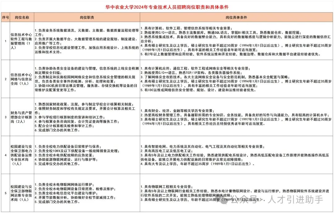 华中农业大学是教育部直属全国重点大学,国家“双一流”建设高校。根据工作需要,学校决定公开招聘信息技术、财务管理、电力运维领域专业技术人员6名。