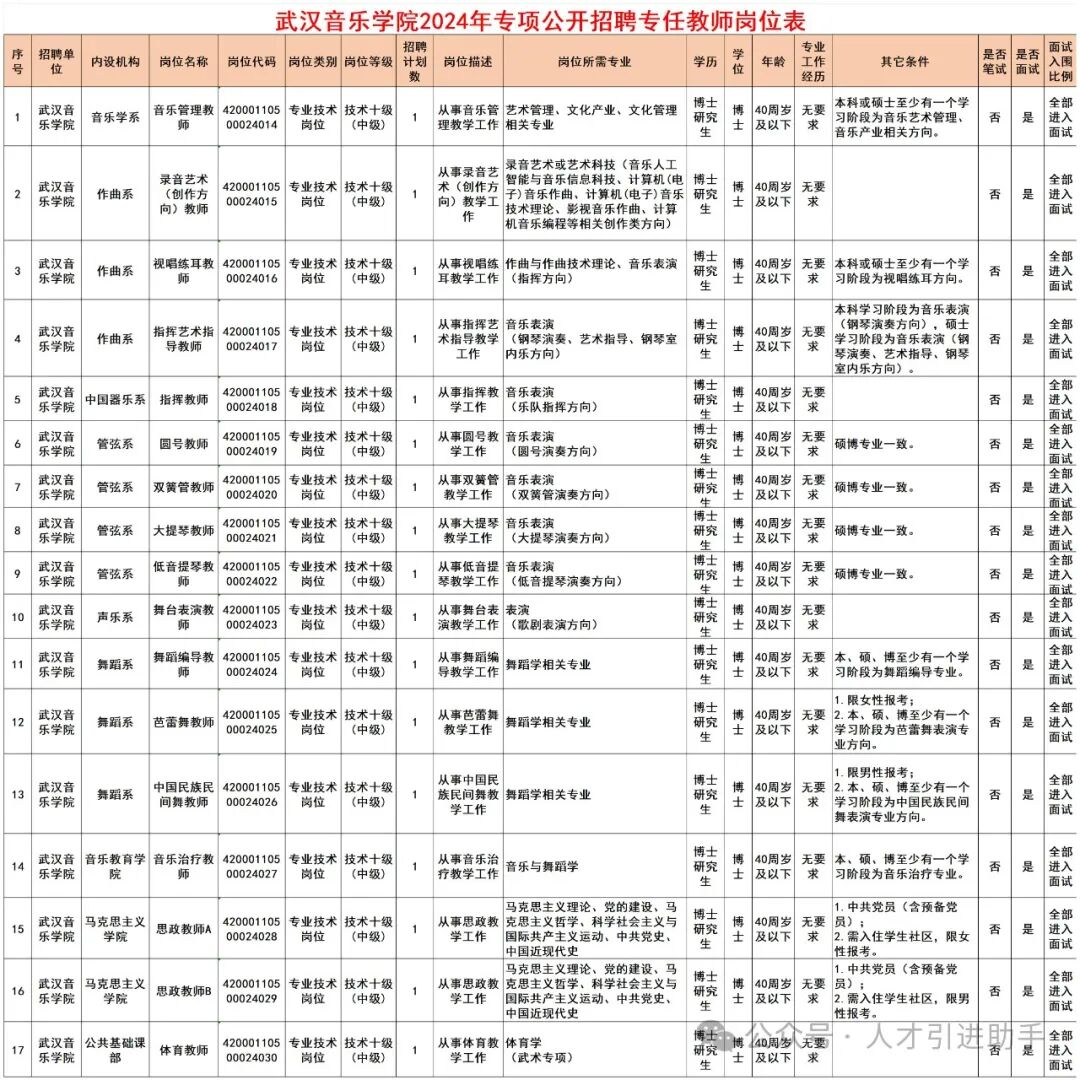 为贯彻党的二十大精神,更好实施“才聚荆楚”工程,促进高校毕业生留鄂来鄂就业创业,建设高素质专业化干部人才队伍,根据《事业单位公开招聘人员暂行规定》(人事部令第6号)等文件精神,我单位拟面向社会专项公开招聘17名专任教师。