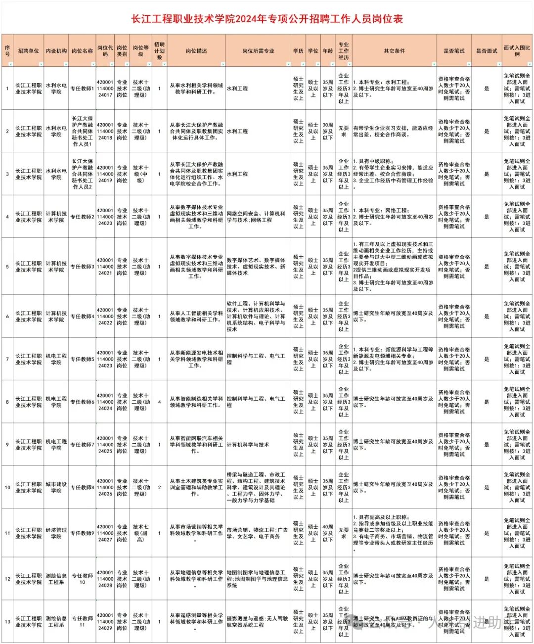 1.长江工程职业技术学院2024年专项公开招聘工作人员岗位表