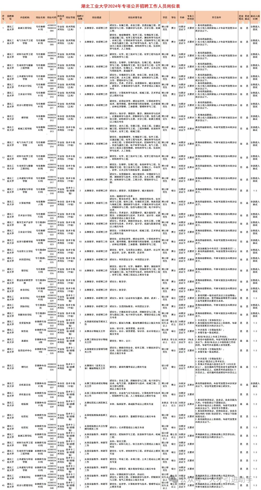 1.湖北工业大学2024年专项公开招聘工作人员岗位表
