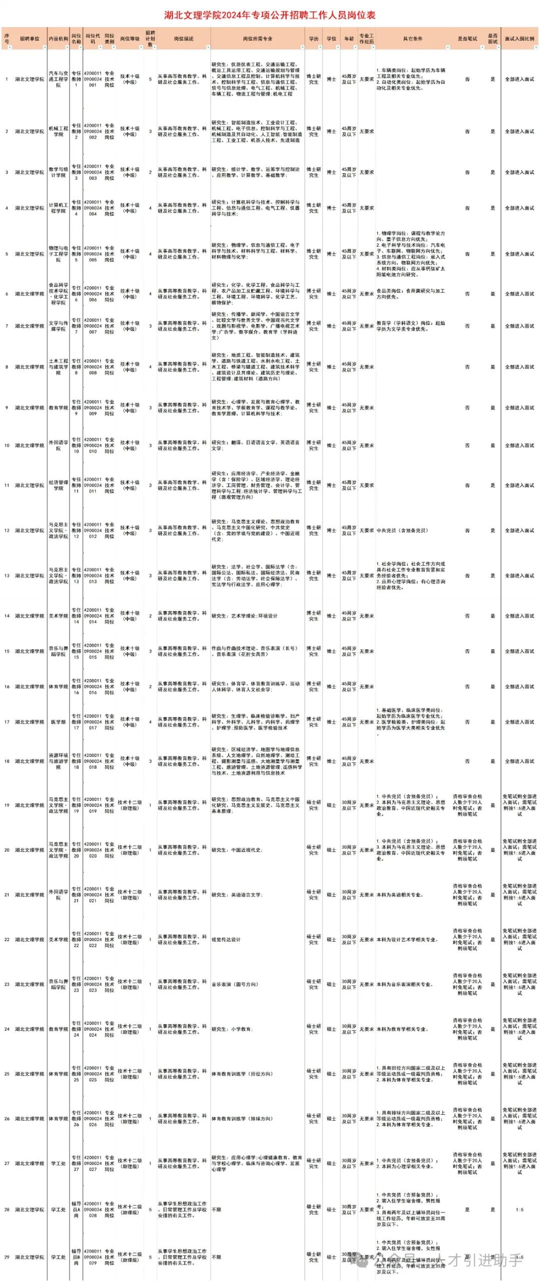 1.湖北文理学院2024年专项公开招聘工作人员岗位表