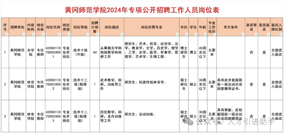 1.黄冈师范学院2024年专项公开招聘工作人员岗位表