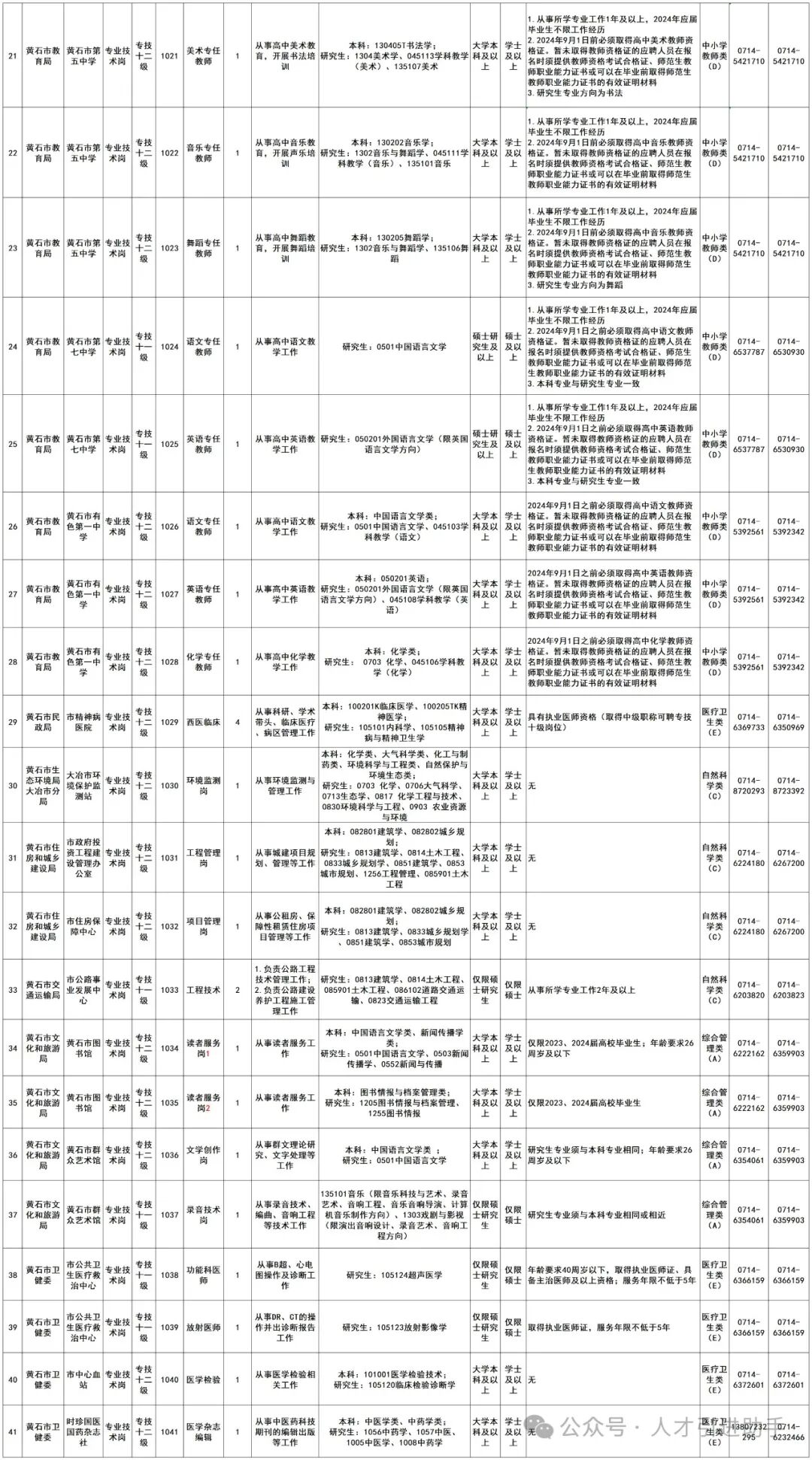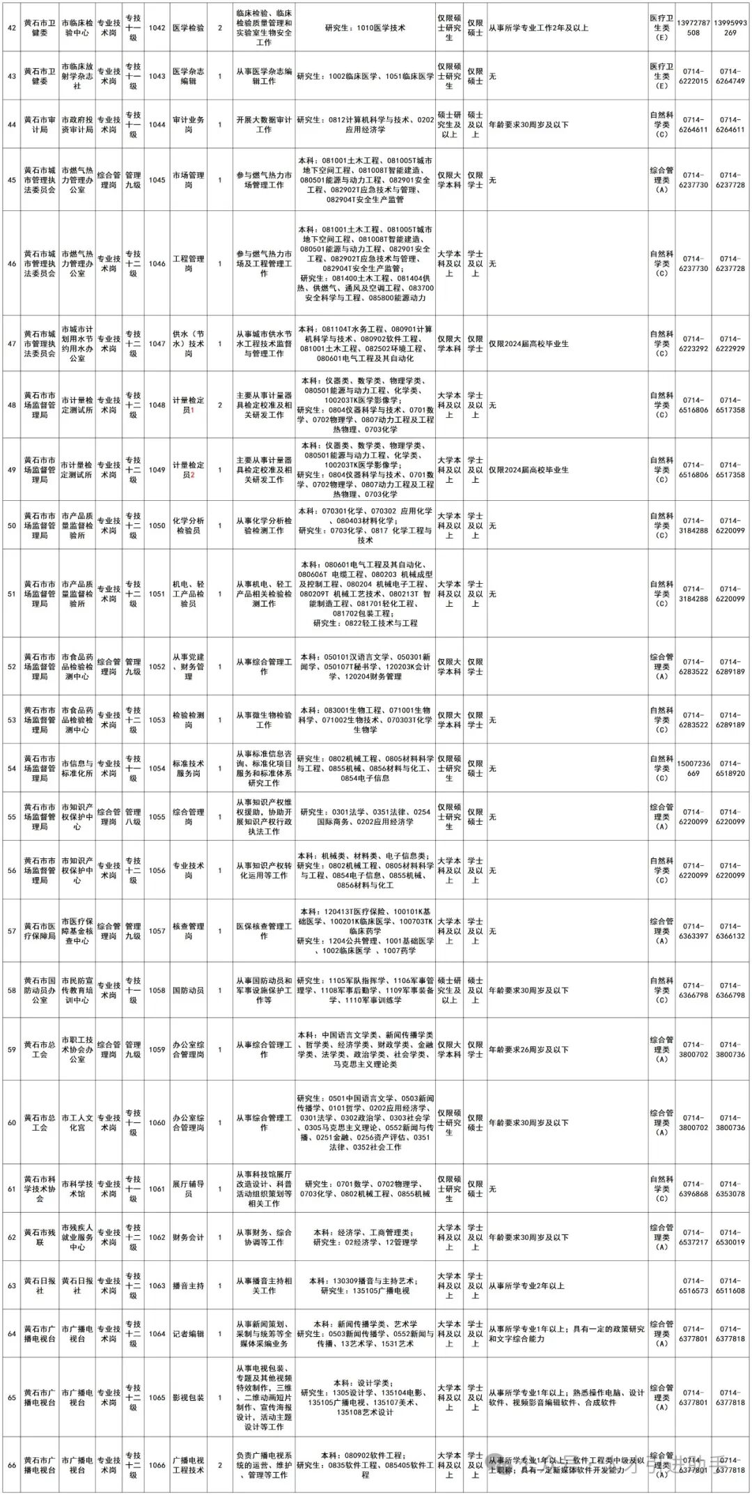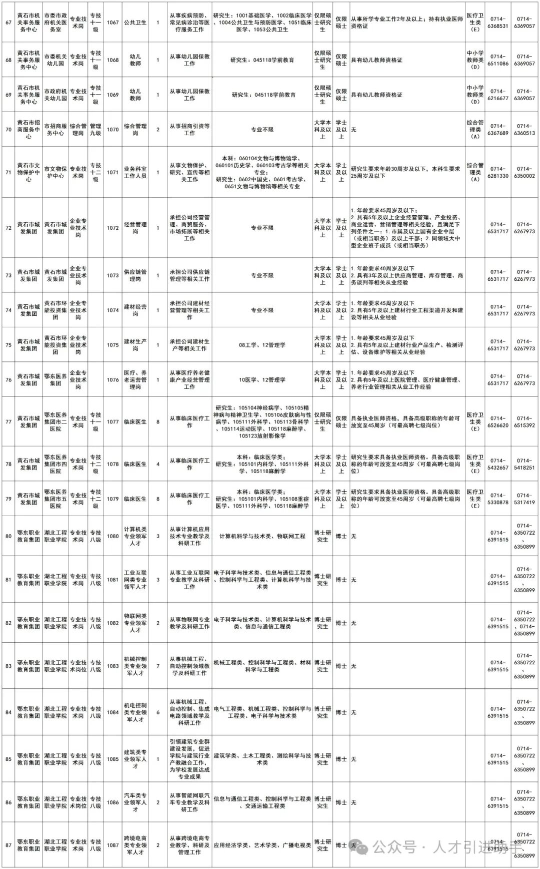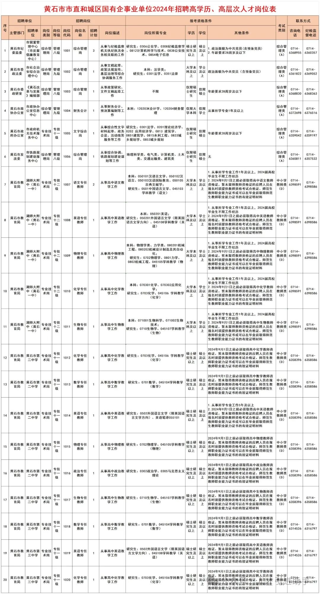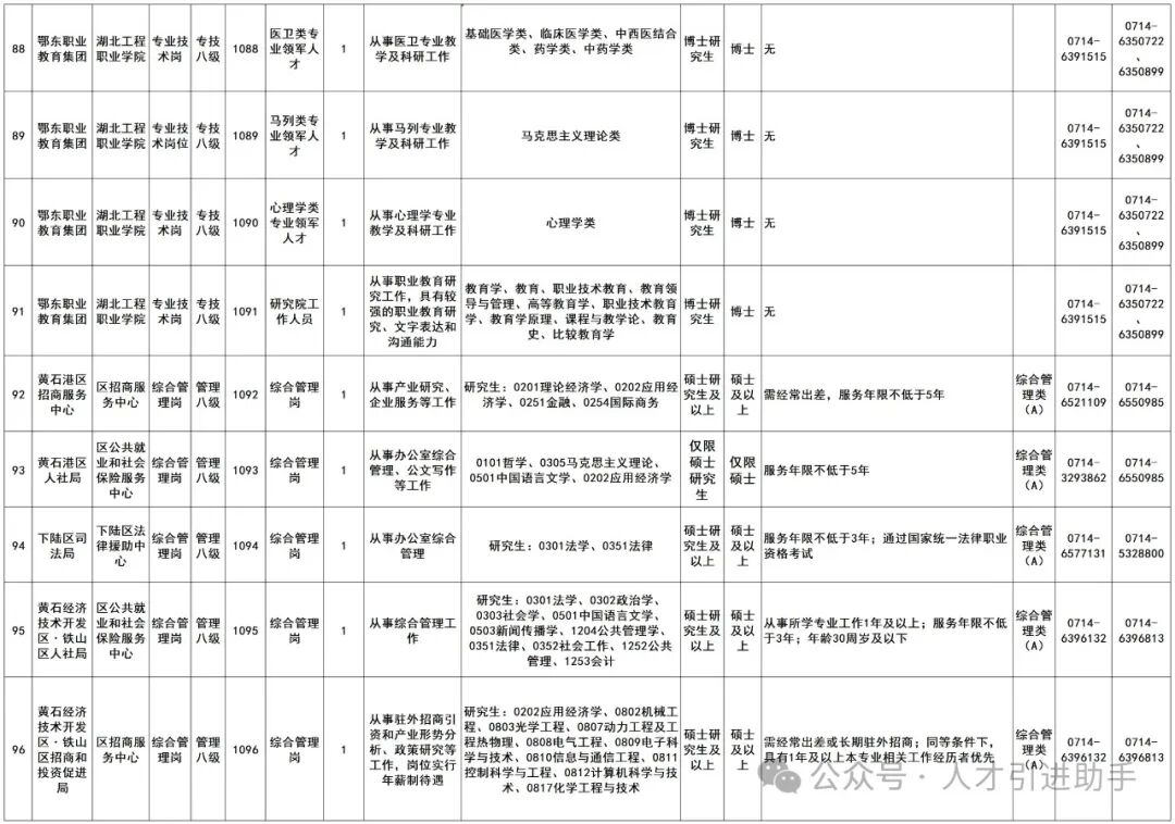 1.黄石市市直和城区国有企事业单位2024年招聘高学历、高层次人才岗位表