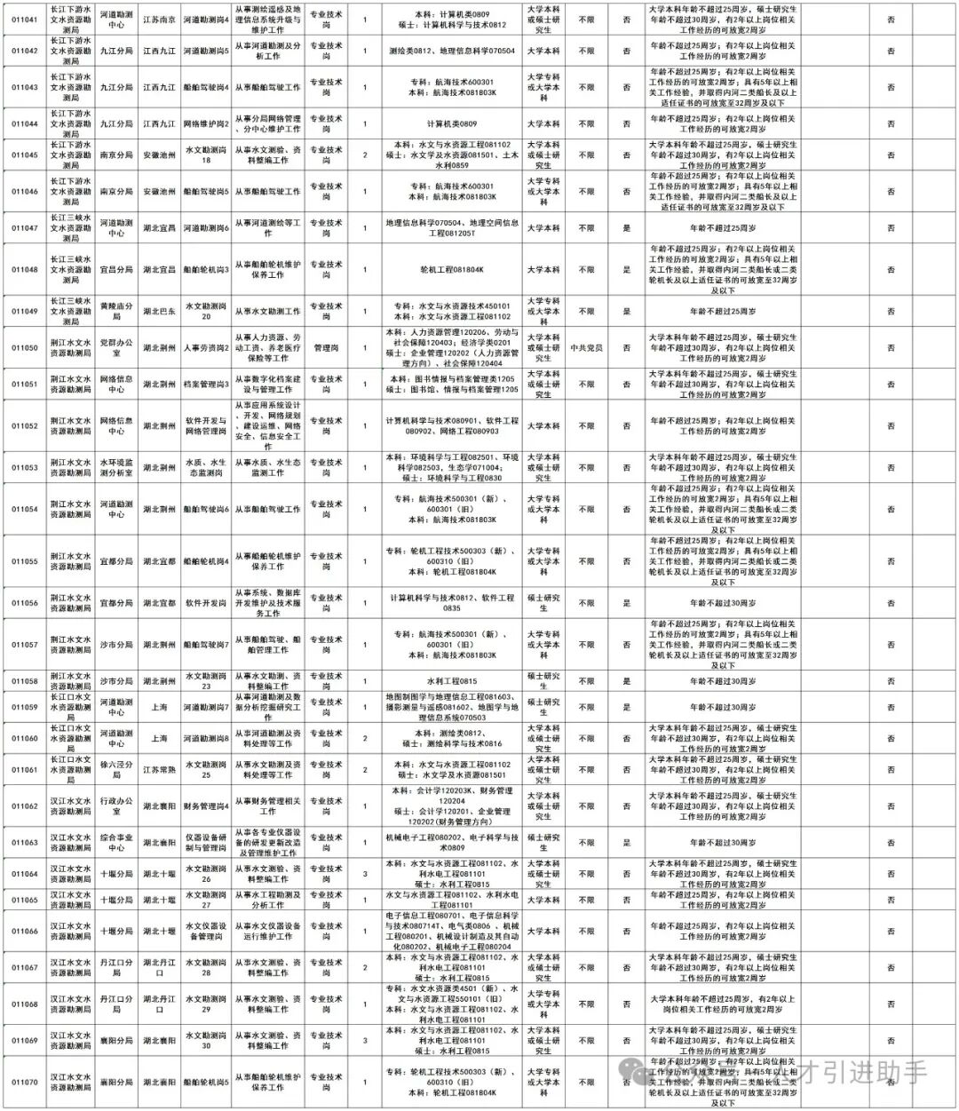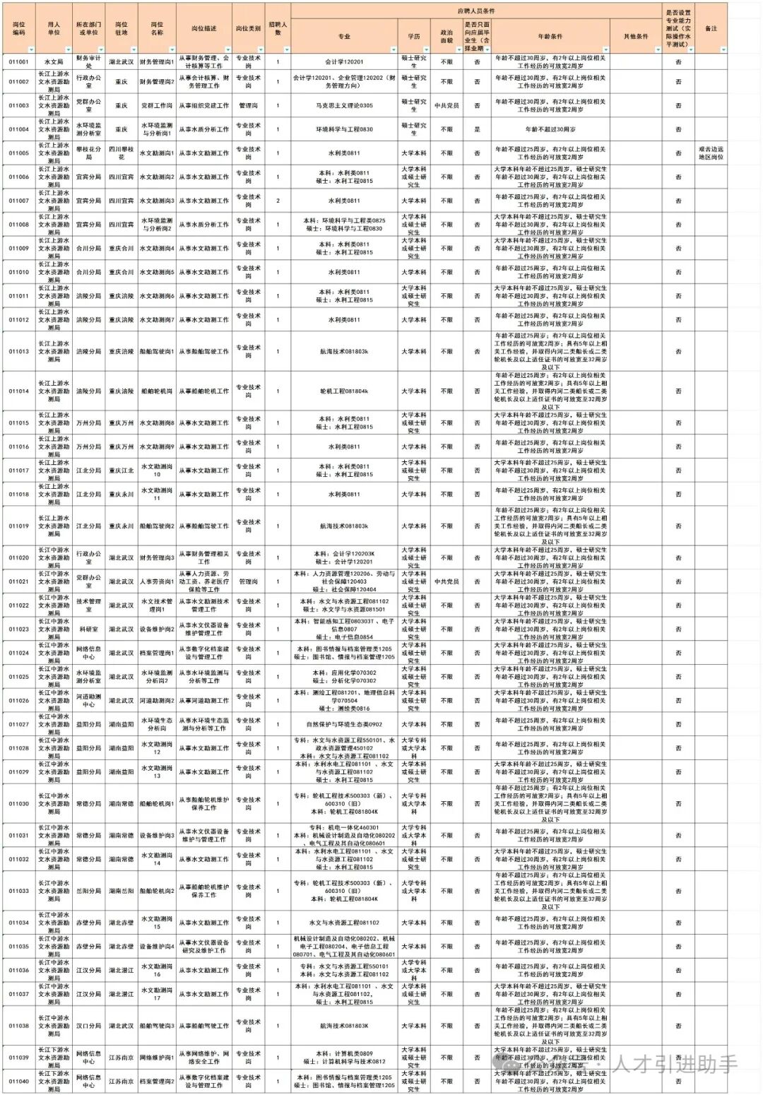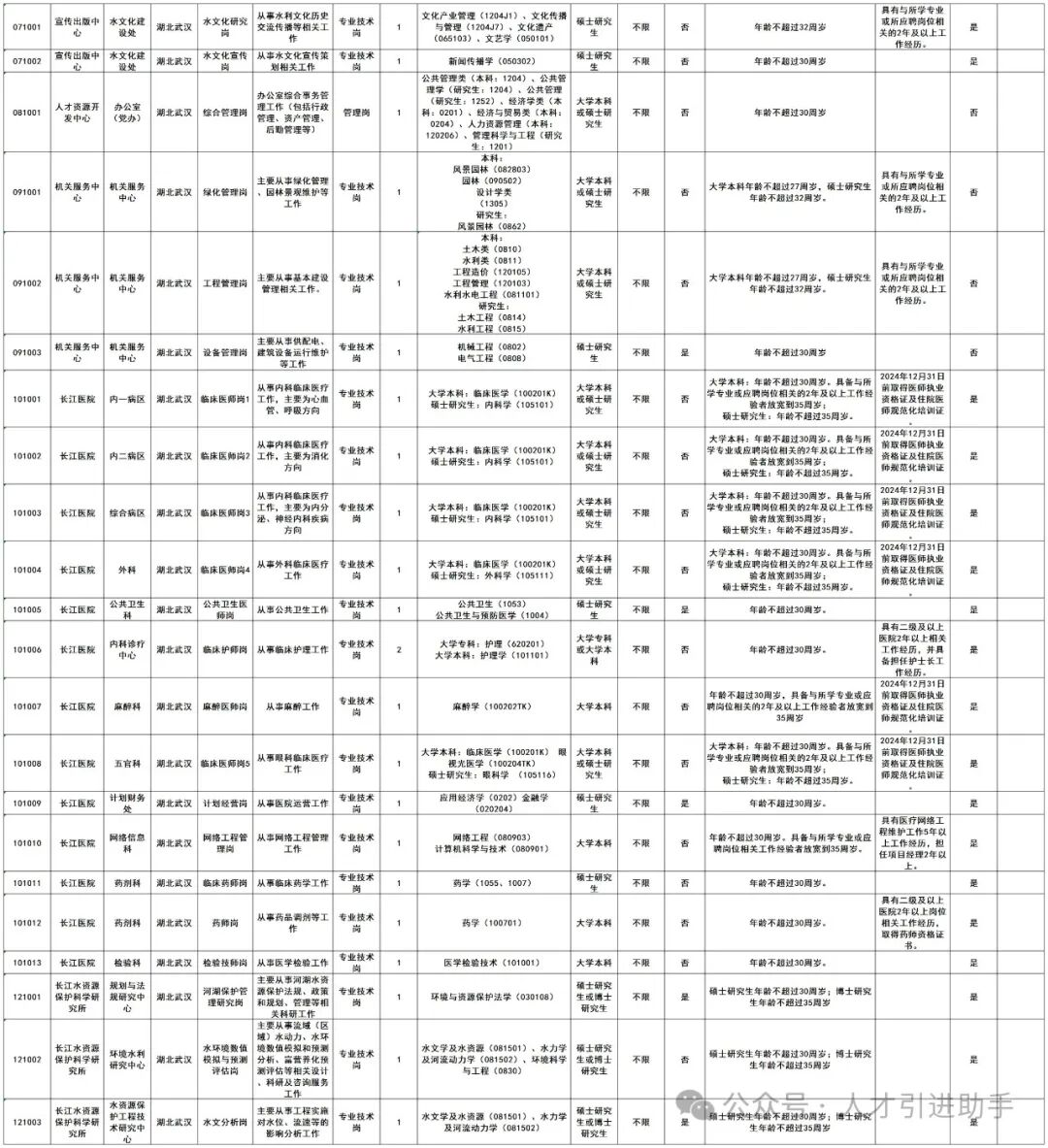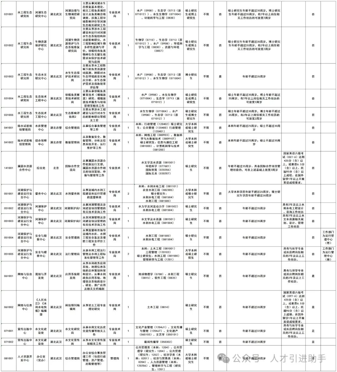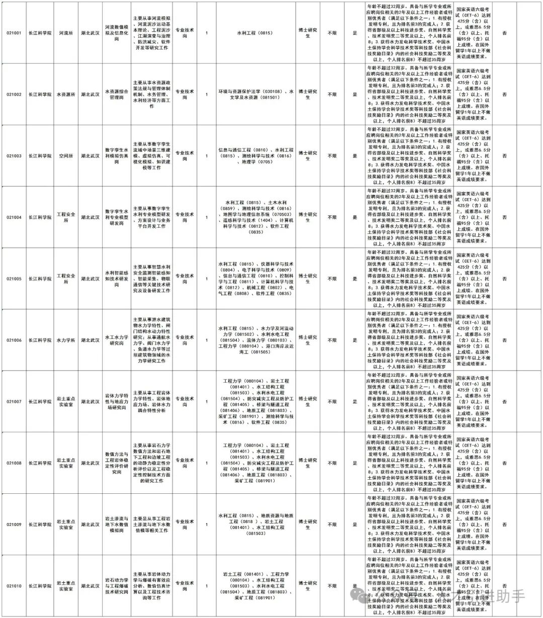 1.水利部长江水利委员会事业单位2024年度公开招聘人员计划表