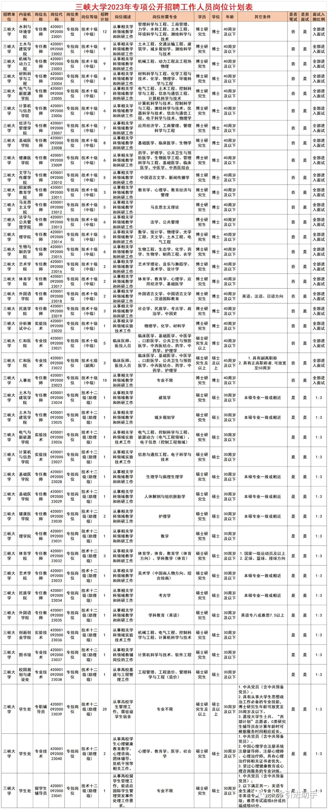 1.三峡大学2023年专项公开招聘工作人员岗位计划表