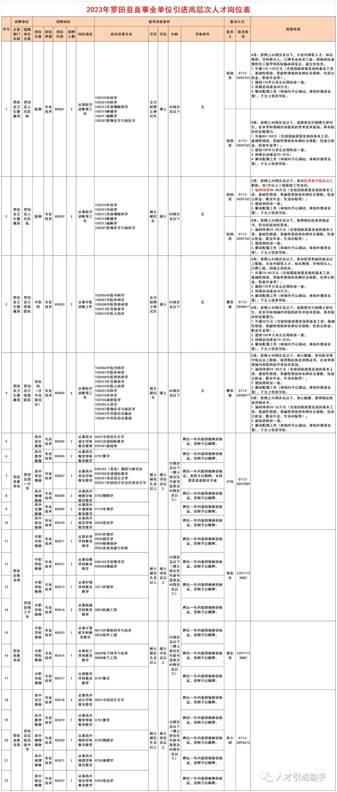 1:2023年罗田县直事业单位引进高层次人才岗位表