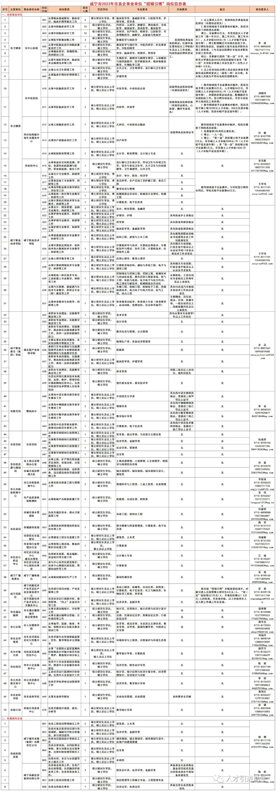 1.咸宁市2023年市直企事业单位“招硕引博”岗位信息表