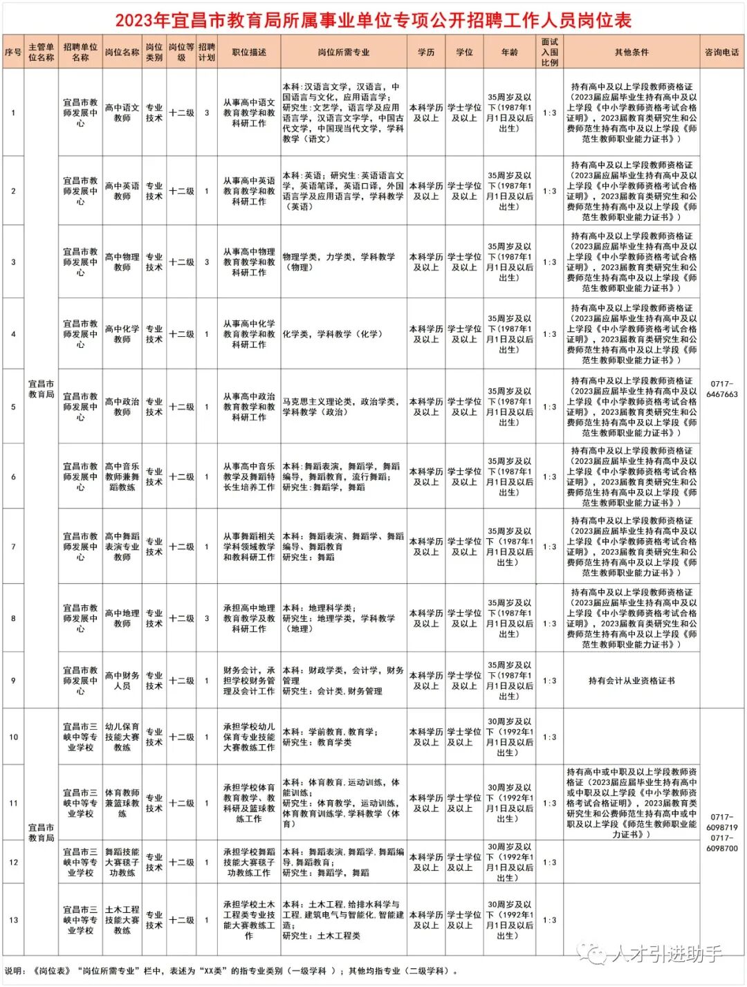 1. 2023年宜昌市教育局所属事业单位专项公开招聘工作人员岗位表
