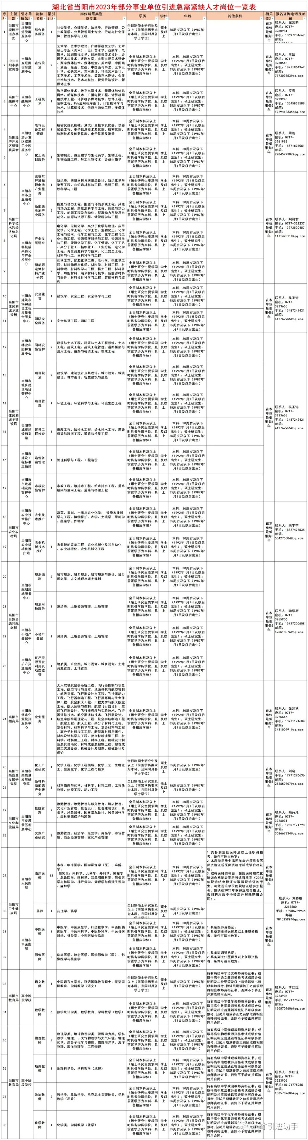 1. 湖北省当阳市2023年部分事业单位引进急需紧缺人才岗位一览表