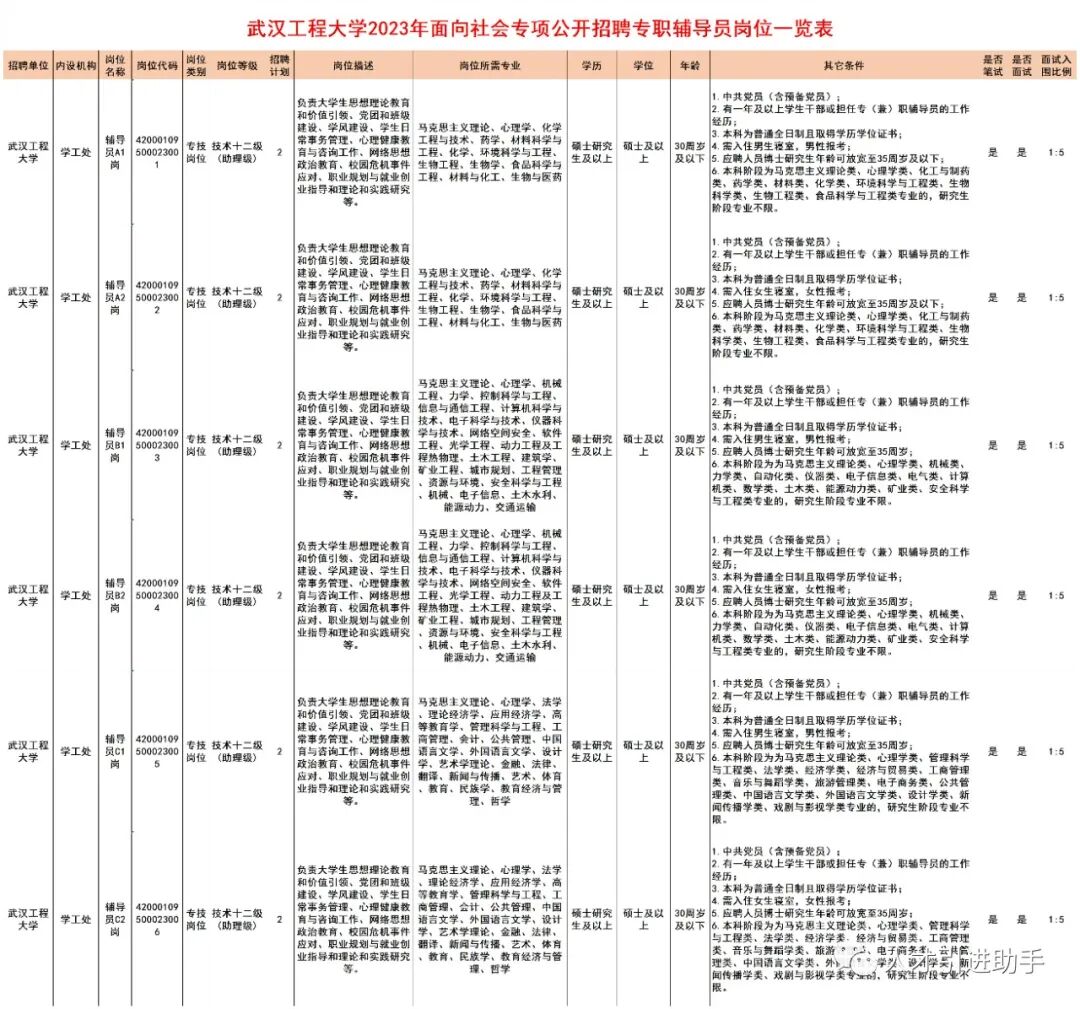 武汉工程大学拟面向社会专项公开招聘专职辅导员12人。