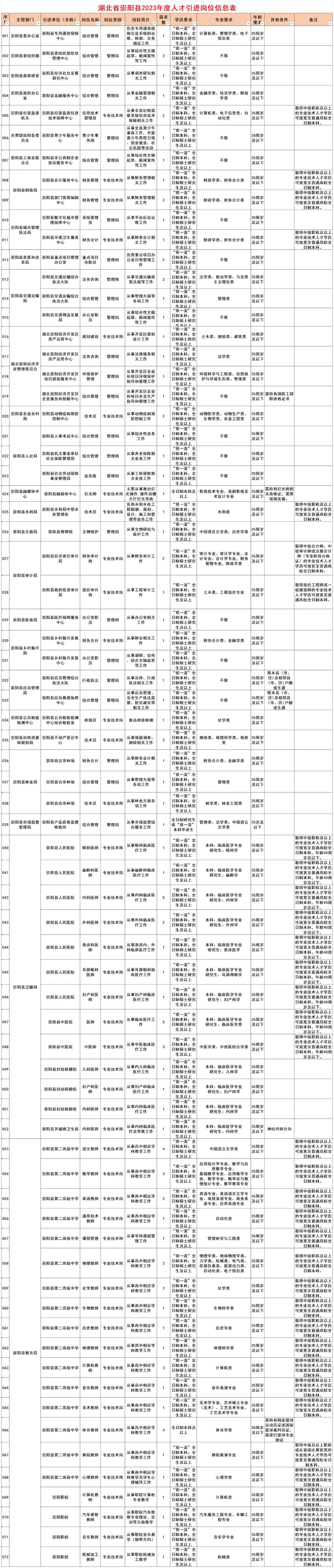 为深入实施新时代“人才强县”战略,推动崇阳高质量发展,经研究决定,全县27家事业单位面向社会公开引进高层次、紧缺专业型人才104人。