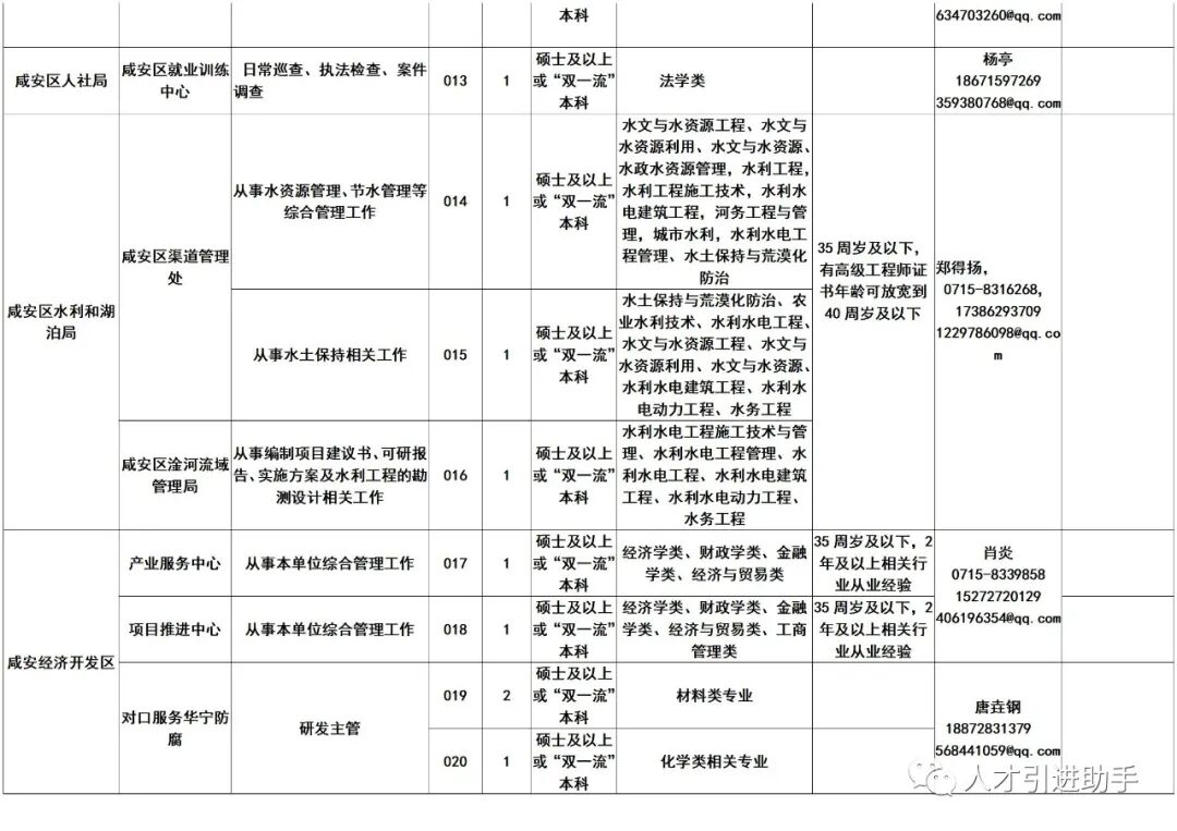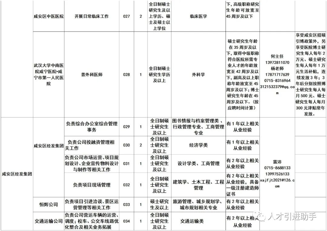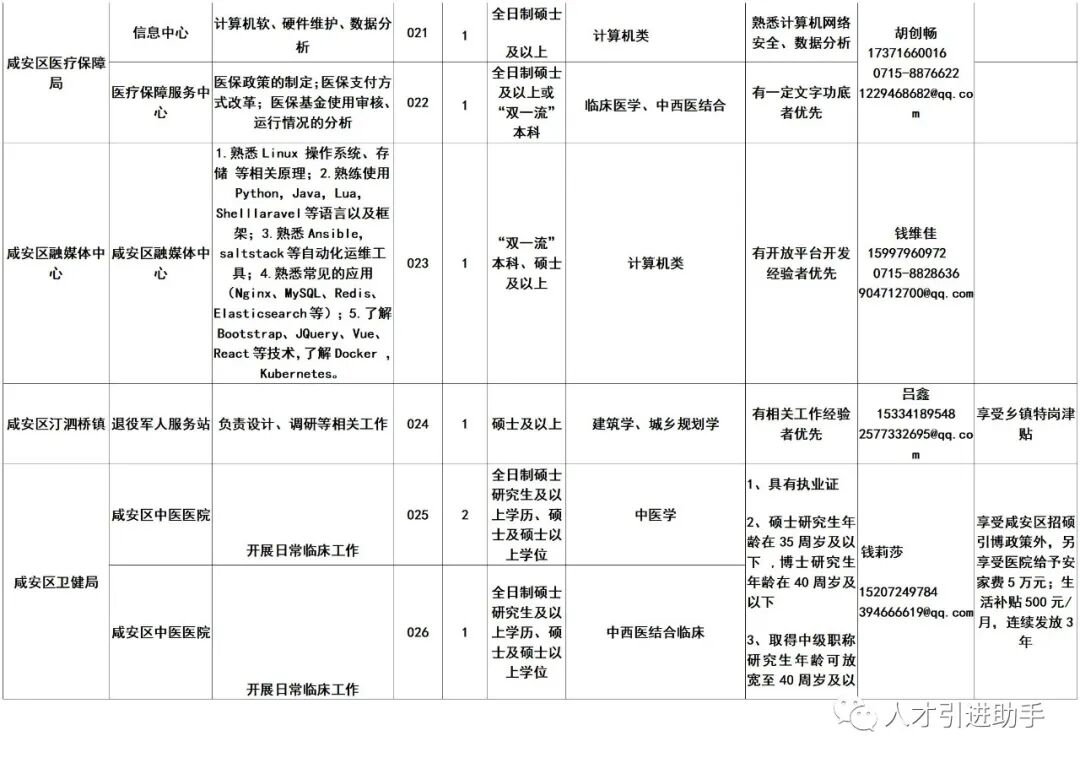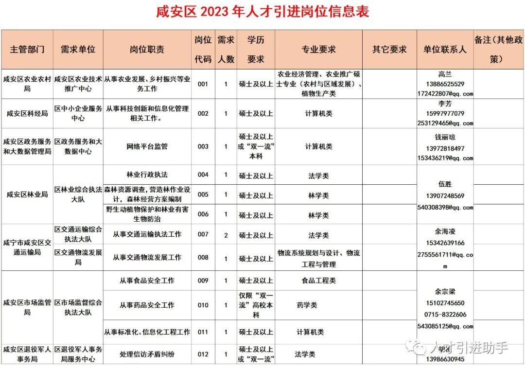 1.咸安区2023年人才引进岗位信息表