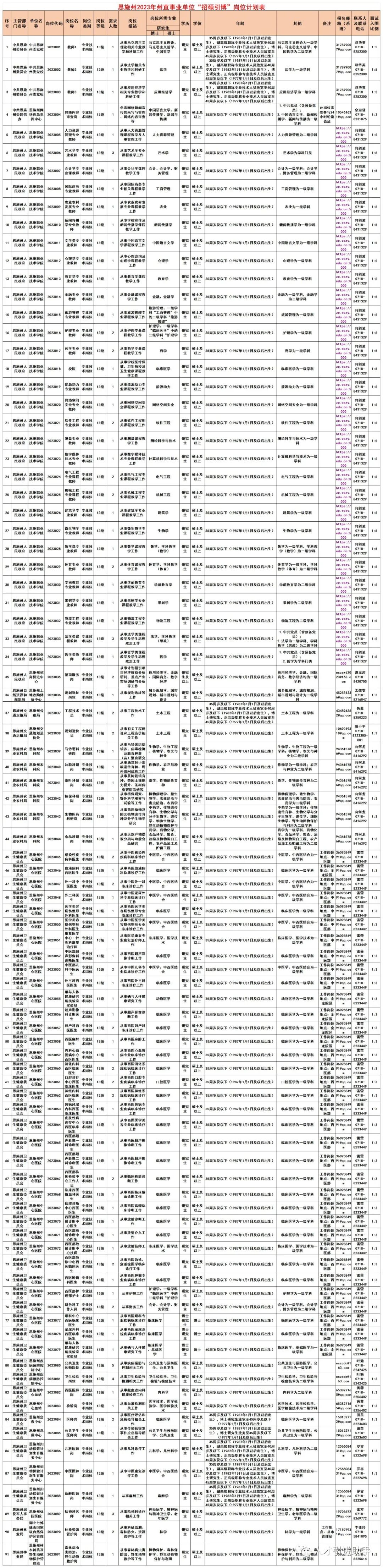 1.恩施州2023年州直事业单位“招硕引博”岗位计划表