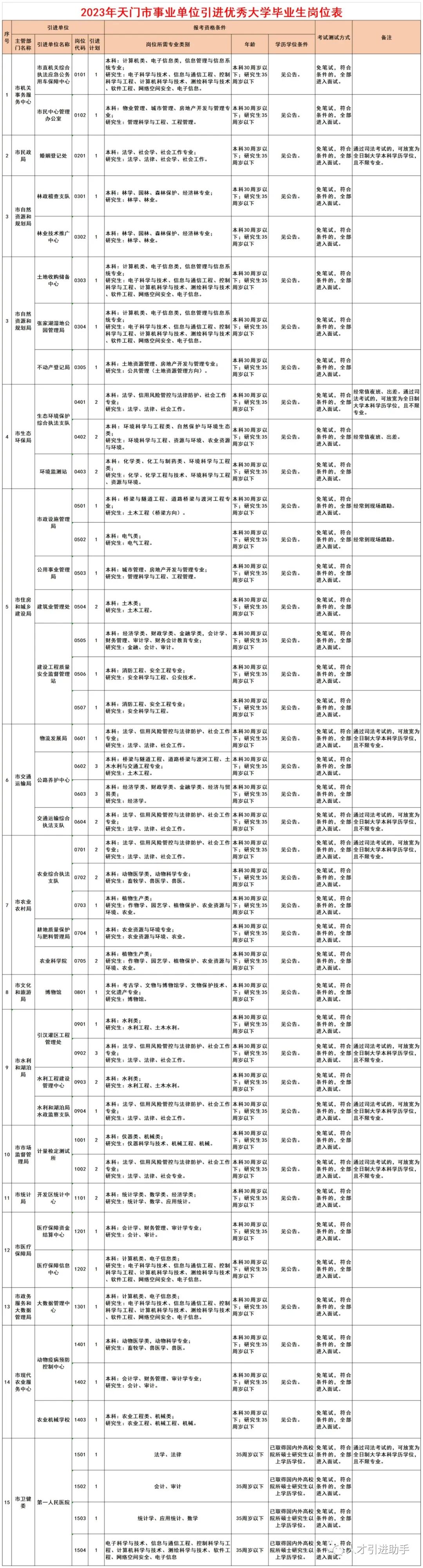 2:2023年天门市事业单位引进优秀大学毕业生岗位表