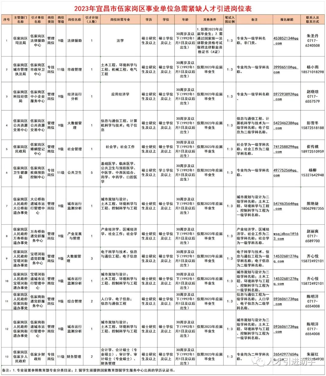 1.2023年宜昌市伍家岗区事业单位急需紧缺人才引进岗位表