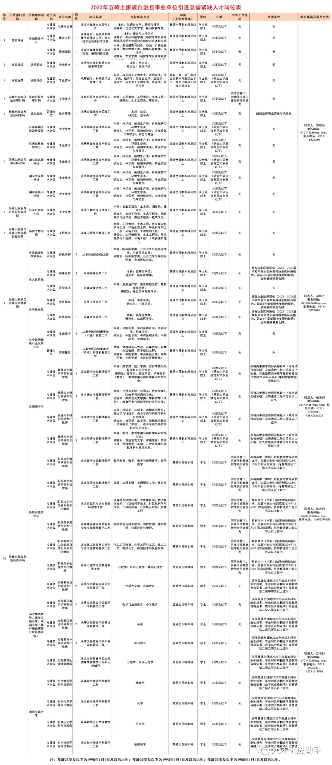 1.2023年五峰土家族自治县事业单位引进急需紧缺人才岗位表