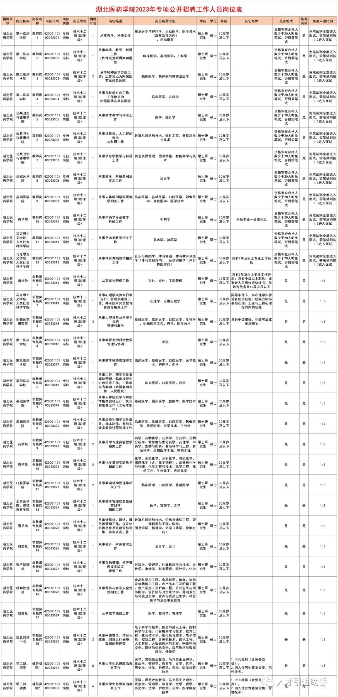 1.湖北医药学院2023年专项公开招聘工作人员岗位表
