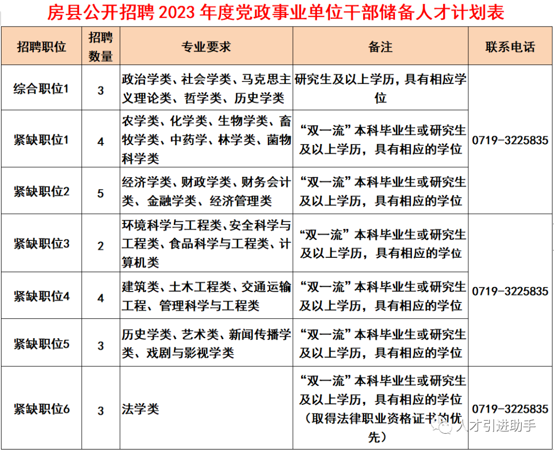 1:房县公开招聘2023年度党政事业单位干部储备人才计划表