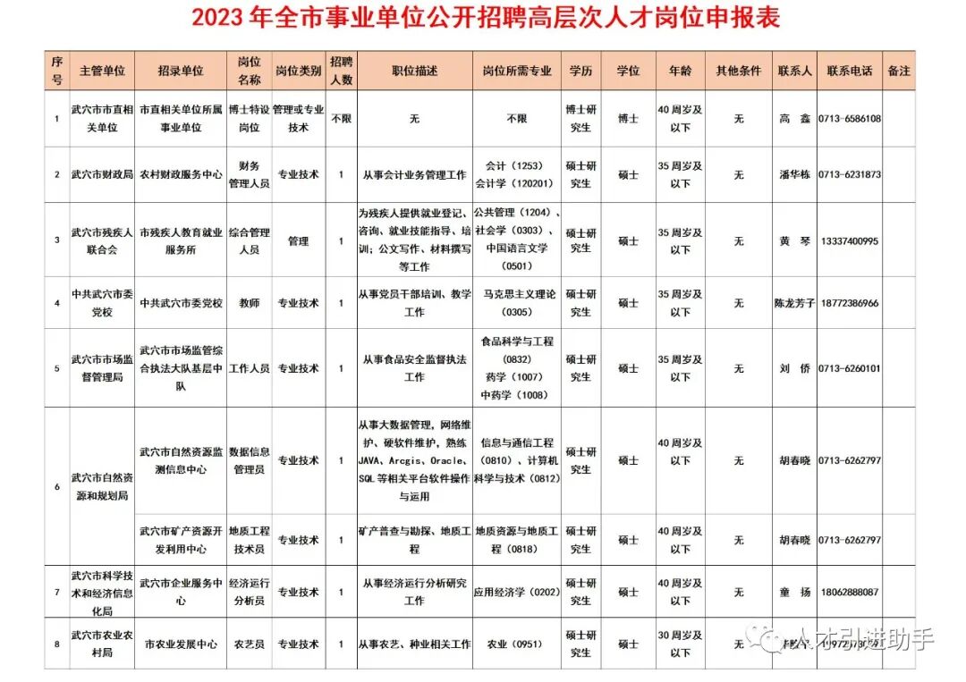 1.2023年全市事业单位第一批高层次人才需求表(武穴)